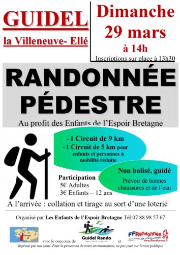 L’association Les Enfants de l’Espoir Bretagne organise avec Guidel Rando, une grande randonnée pédestre solidaire le dimanche 29 mars 2026, à 14h, au profit de ses actions en faveur des enfants.